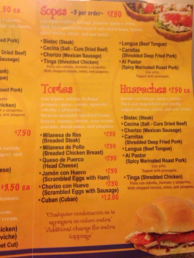 Sopes are a small thick tortilla it comes three per order. It is topped with beans, your choice of meat, lettuce, sour cream and cheese. You can have them as a meal or an appetizer.
